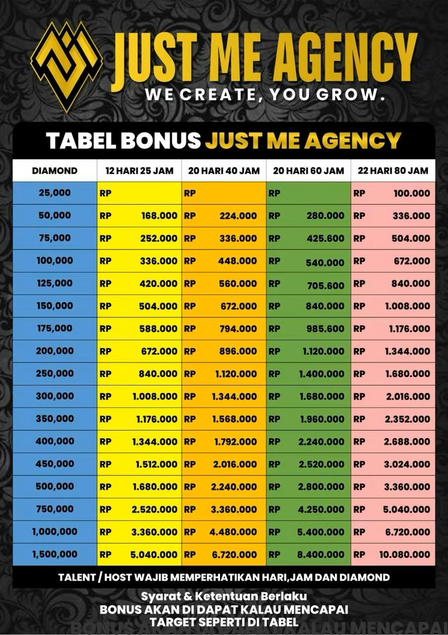 Kami percaya setiap pencapaian pantas mendapatkan apresiasi. Lihat skema bonus transparan kami untuk para talenta berprestasi dan klik untuk memperbesar.